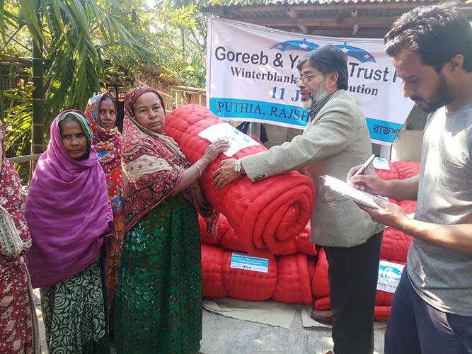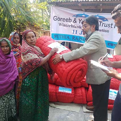 Winter is a very difficult season for some especially those who are suffering from extreme poverty and have very little to depend on; always having the fear of how they�ll make it through the winter season. G&Y has already � with your support � taken the initiative of aiding the underprivileged in the areas which are also underdeveloped in Bangladesh. We have distributed 500 blankets in 2023 with an overall average of 16,000 blankets since the inception of G&Y and have helped over 20,000 people. Our hope is to reach over the 1,000 mark each year of distributing blankets with your help and support. We can reach a lot more people in particular those who are living in rural areas and are somewhat forgotten.