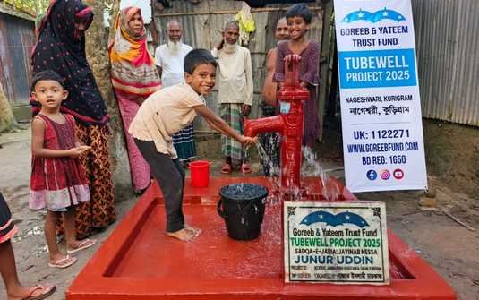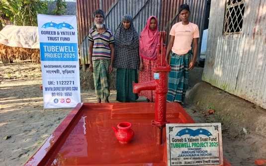 Assalamu Alaikum, G&Y installed a tube well for us as a family to drink fresh water. We experienced a lot of difficulties as a result of not having a tube well. We needed to walk 15/20 minutes to fetch water from ponds and on other occasions from other houses which was very far from our house. Since the installation of this tube well, 7/8 families are benefitting with fresh water.